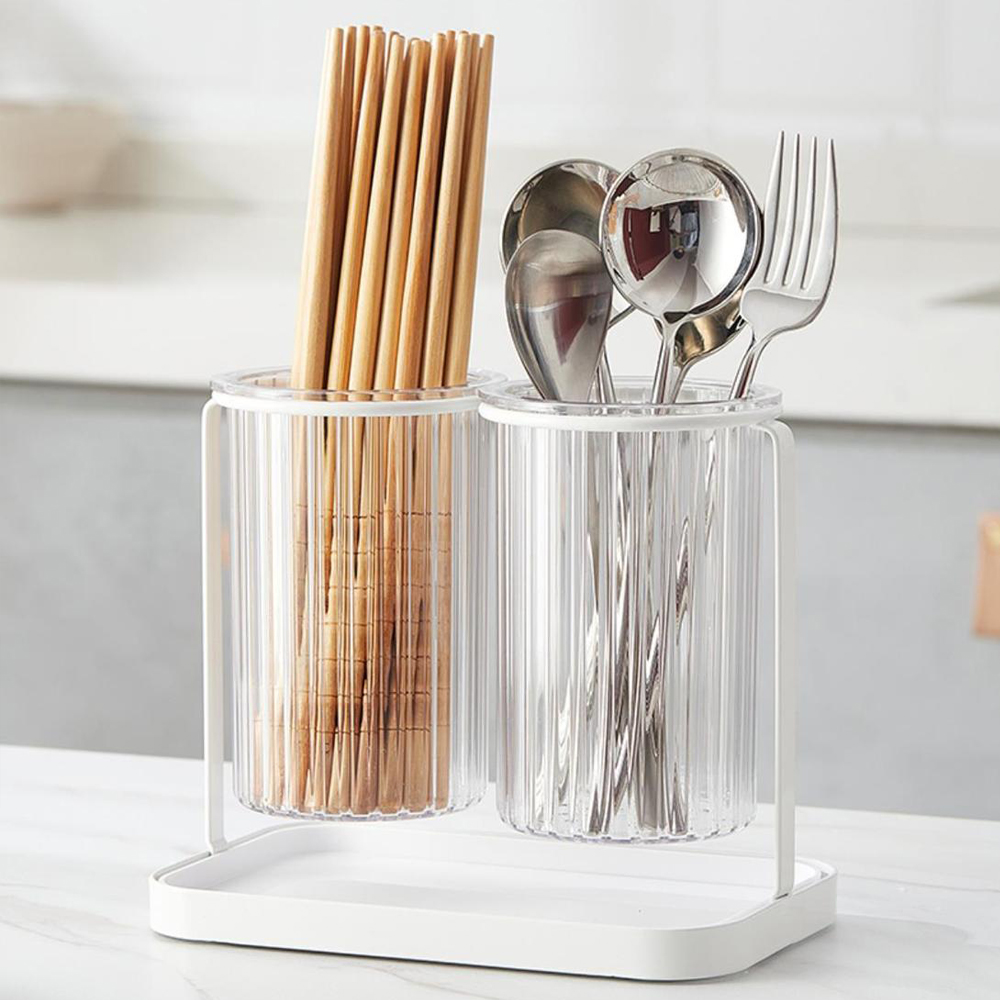 물빠짐수저통 레트로 북유럽 투명 모던한 수저통 2구
