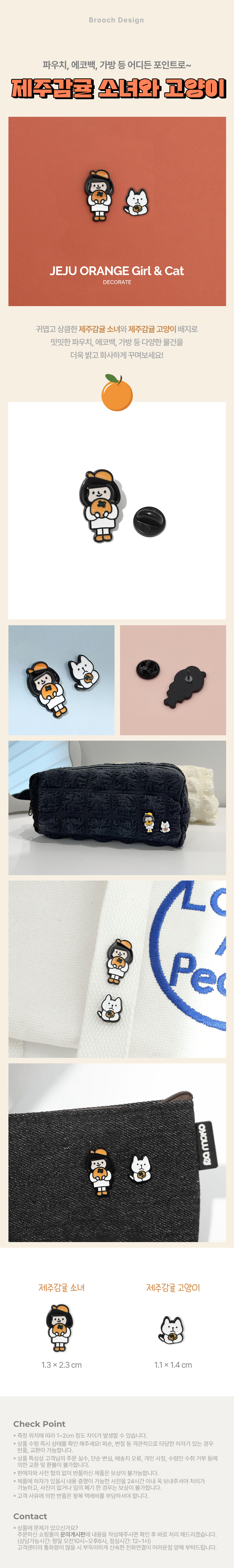 제주 감귤 소녀 고양이 뱃지 귀여운 오렌지 브로치